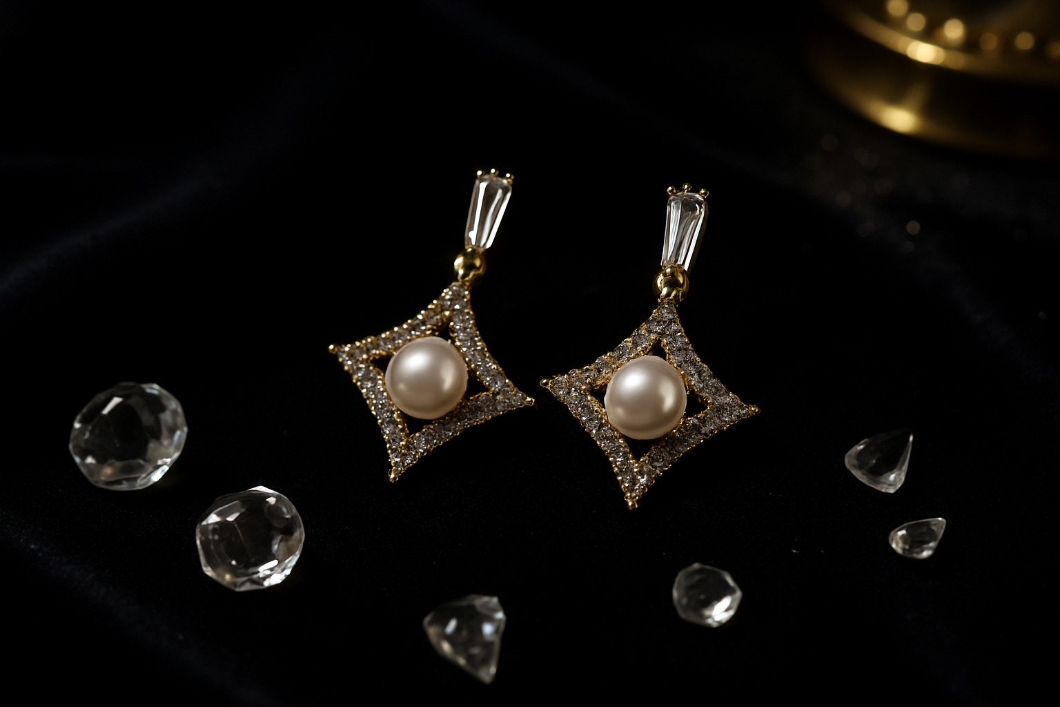 - ✓ Star-shaped design with central pearl for a radiant statement