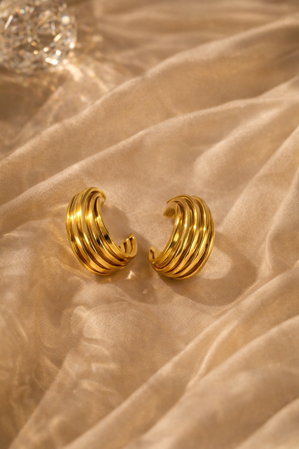 Minimal yet striking, the Aurelia Ribbed Gold Hoop Earrings are designed for effortless sophistication. Featuring layered ribbed detailing and a high-polish gold finish, these hoops bring depth and dimension to a classic silhouette. Perfect for everyday wear, they transition seamlessly from workdays to evening outings with understated elegance.