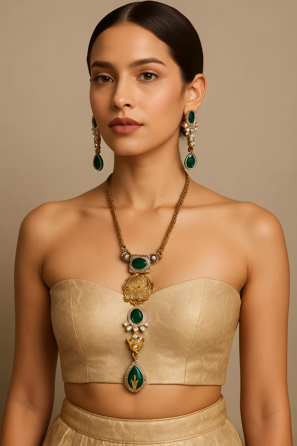 Emerald Nandi Heritage Necklace & Earrings Set