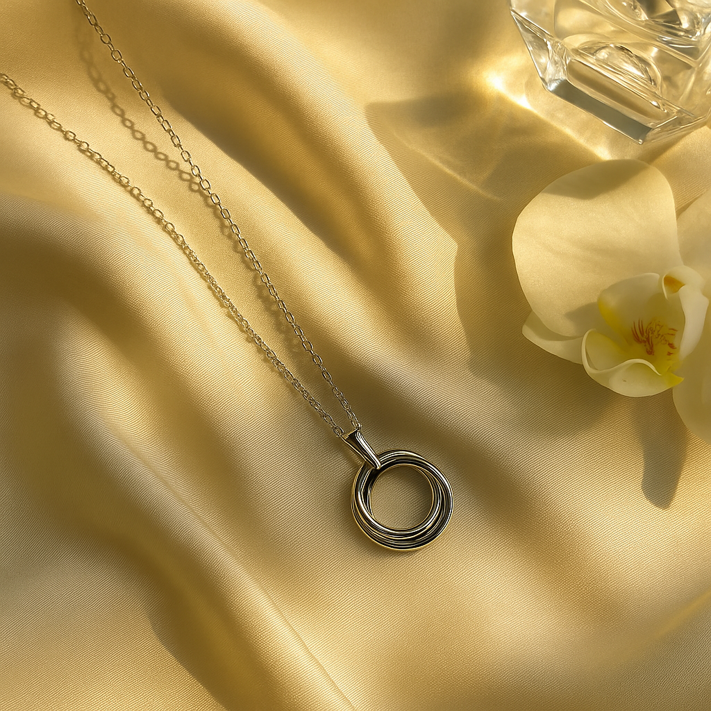 ✅ Sleek interlocking rings pendant design ✅ Polished silver-toned finish for a modern look ✅ Lightweight, versatile, and perfect for layering ✅ Durable and tarnish-resistant with proper care